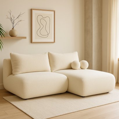 Tkanina Quelle to wytrzymały, poliestrowy materiał typu bouclé (baranek) o wysokiej gramaturze (ok. 315 g/m²), charakteryzujący się pętelkową, puszystą fakturą. Jest trwała, odporna na ścieranie i mechacenie, nadaje meblom przytulny i elegancki wygląd, a do tego dostępna jest w wielu modnych kolorach. Stanowi idealny wybór do mebli tapicerowanych, takich jak sofy czy fotele, ale ze względu na swoją strukturę wymaga delikatniejszej konserwacji.